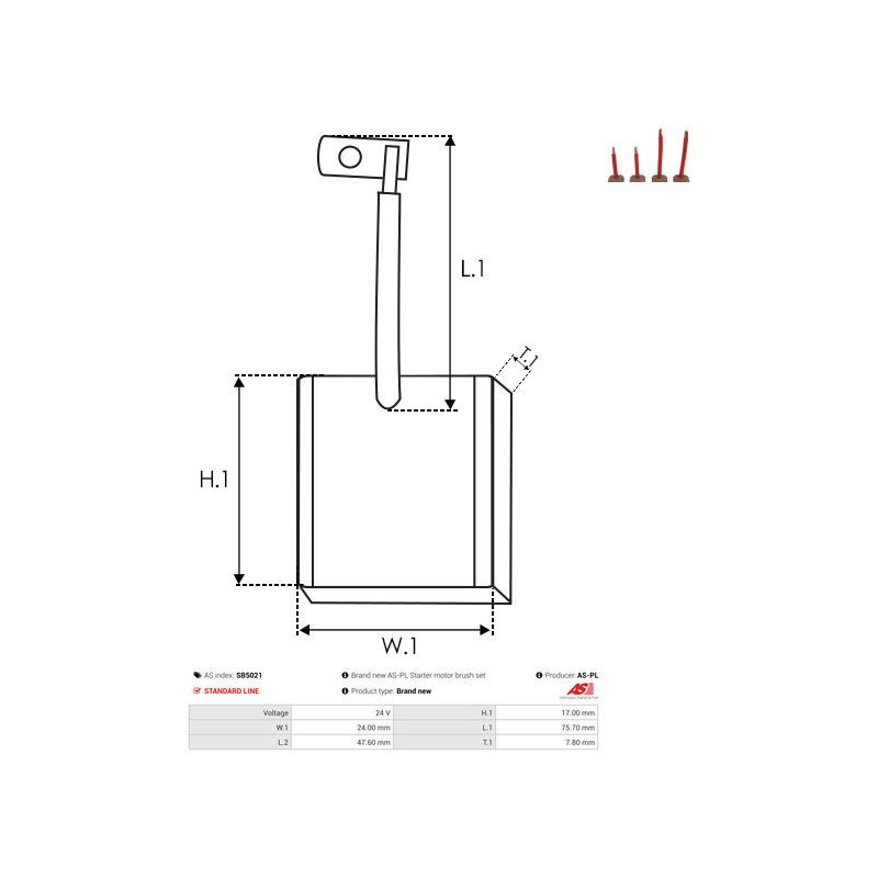 • Carbon Brush, starter AS-PL SB5021