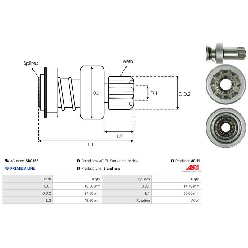 • Freewheel Gear, starter AS-PL SD0155