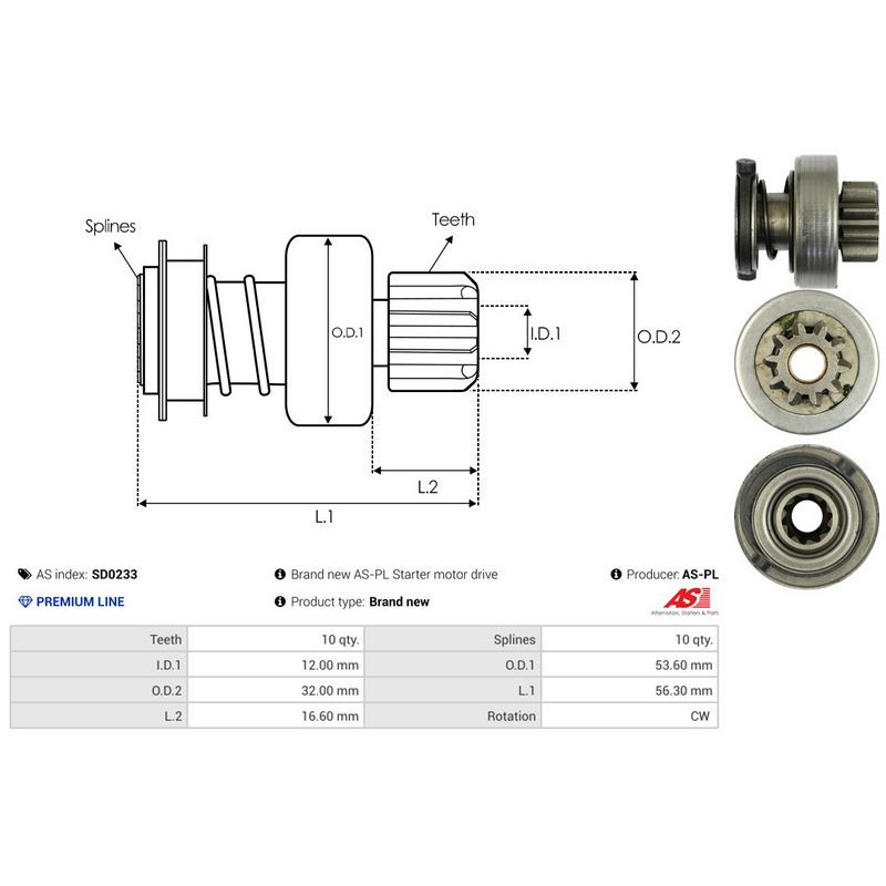 Freewheel Gear, starter AS-PL SD0233 - Ristmik autovaruosad