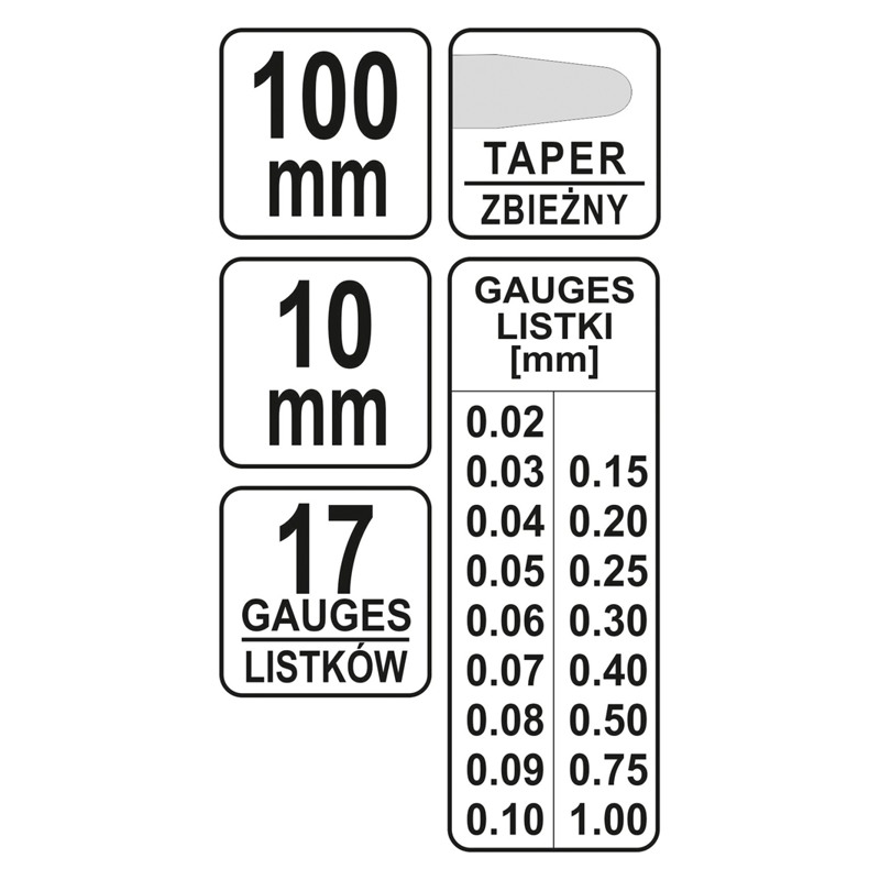 YATO YT-7220 feeler gauge set 100×10 mm 0.02–1.00 mm (17 pcs) - Ristmik autovaruosad