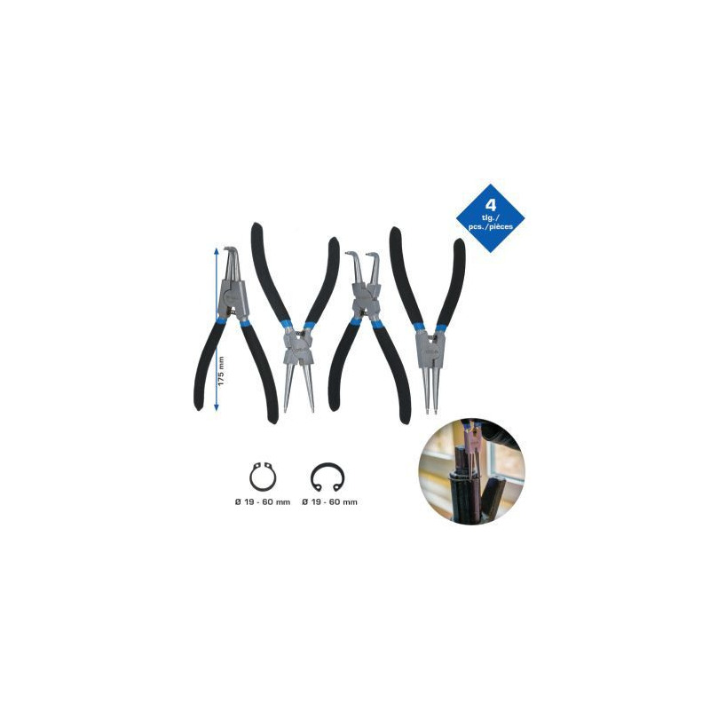 Brief Information: Circlip pliers set, 4 pcs, 175 mm General Information: • 4-piece set