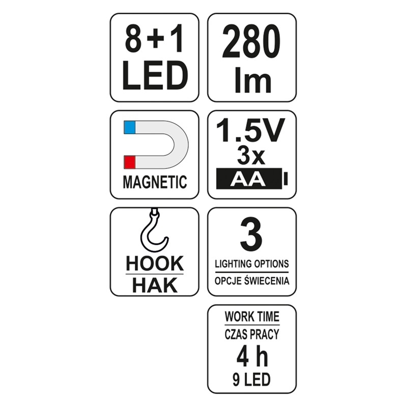 YATO YT-08513 work light cordless LED lamp 3×AA - Ristmik autovaruosad