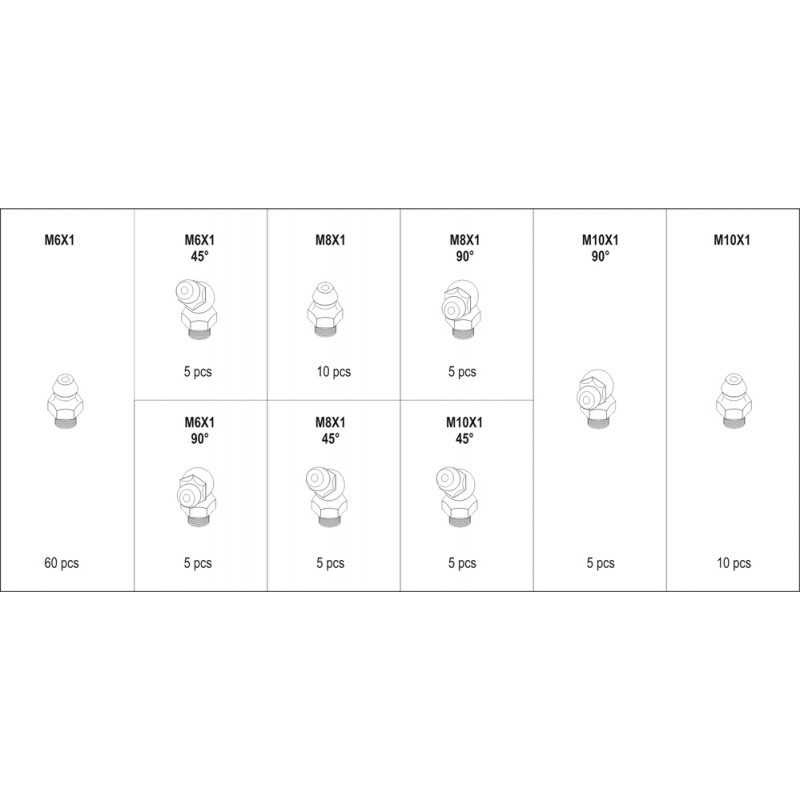 • YATO YT-06888 grease nipple set 110 pcs M6–M10