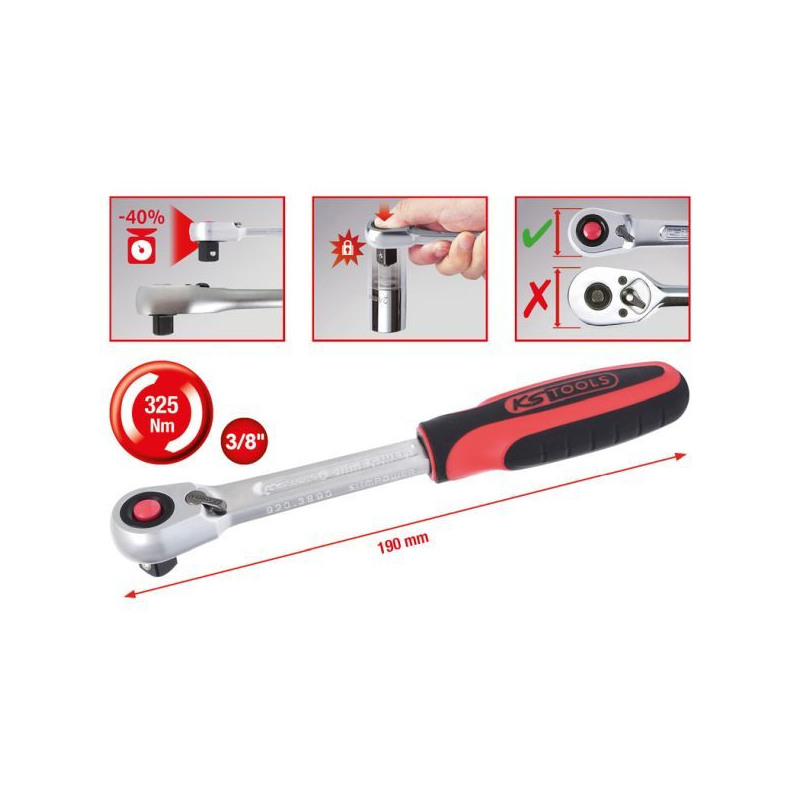 Tietoja lyhyesti: 3/8" SlimPOWER-suunnanvaihtoräikkä, 72-hampainen Yleiset tiedot: •DIN 3122 / ISO 3315:n mukainen