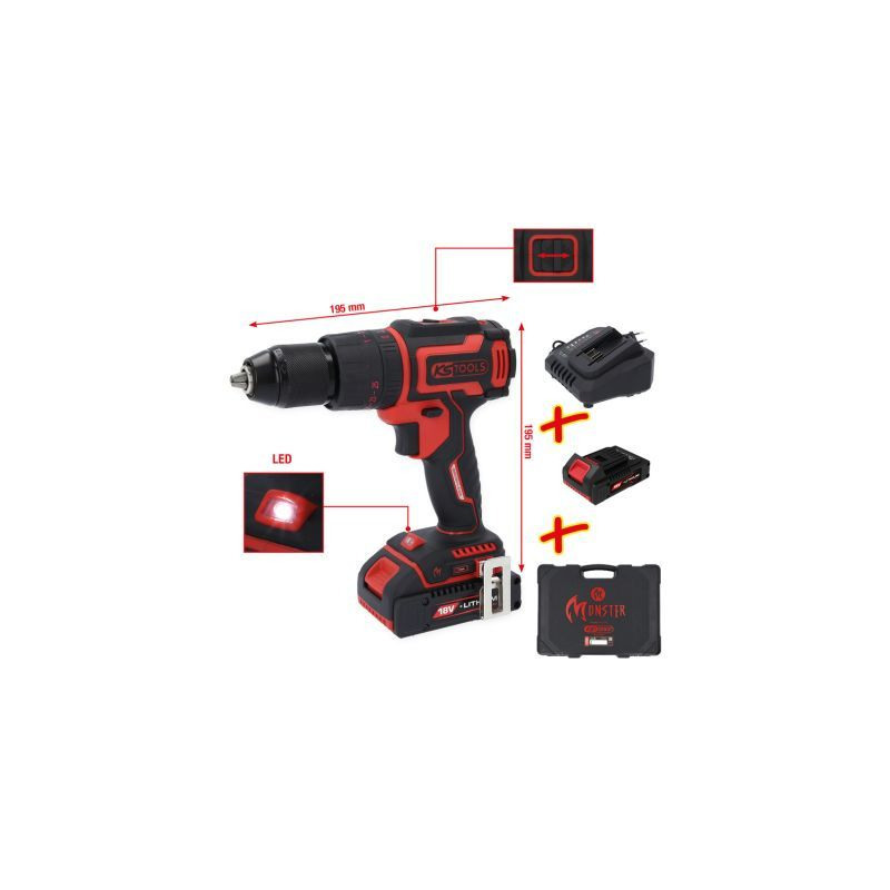 Tietoja lyhyesti: eMONSTER harjaton akkukäyttöinen iskuväänninsarja, 4-os Yleiset tiedot: •13 mm:n Röhm-metallipikaporaistukka