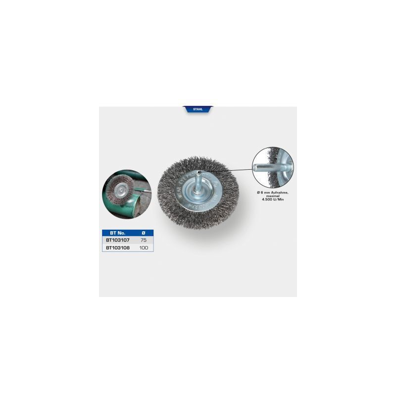 Tietoja lyhyesti: Levyharja, Ø 100 mm, 6 mm:n kiinnitinYleiset tiedot: •karkaistu teräslanka