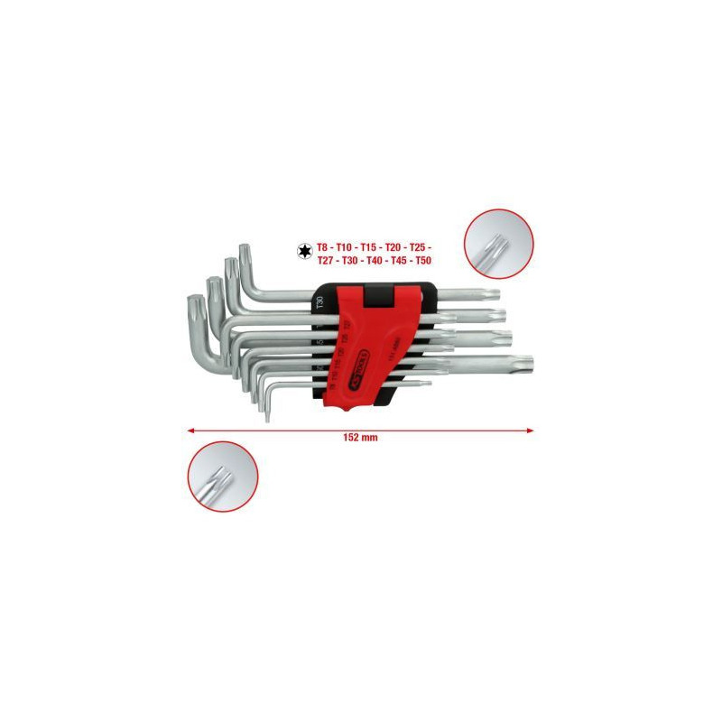 Tietoja lyhyesti: Torx-kulmatappiavainsarja, pitkä, 10-osYleiset tiedot: • pitkä malli