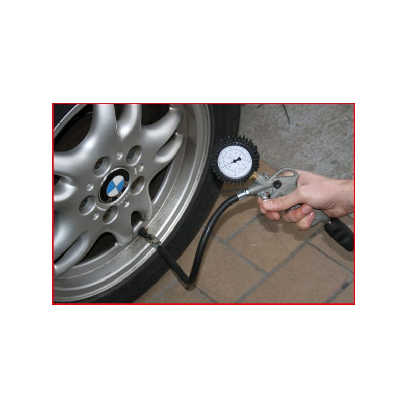 Tietoja lyhyesti: Asteikolla varustettu rengasilmanpaineen mittari, 0-10