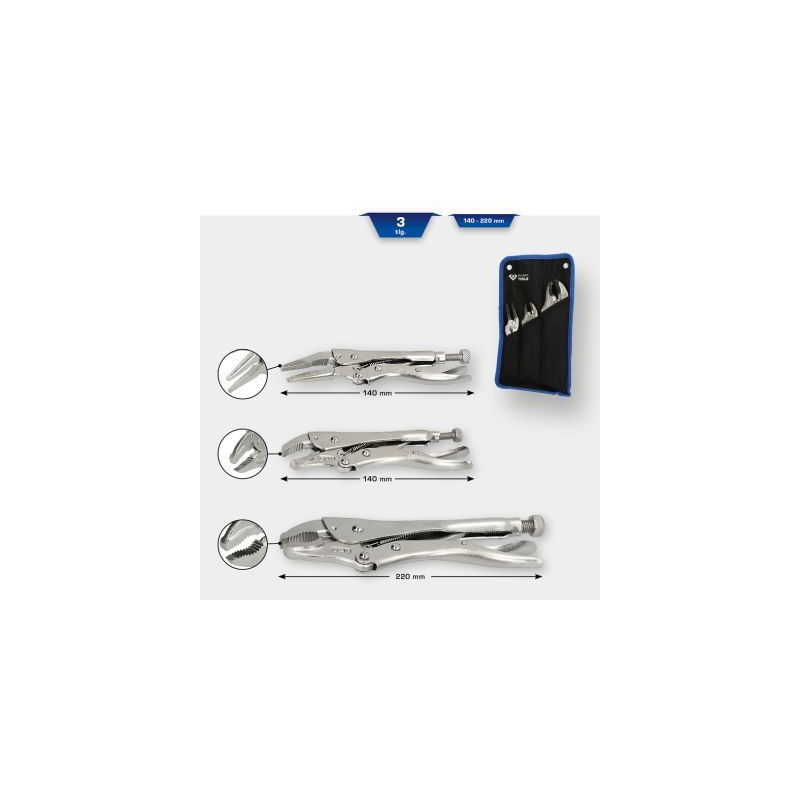 Tietoja lyhyesti: Lukkopihdit / lukkopihtisarja, 3-osYleiset tiedot: •3-osainen sarja