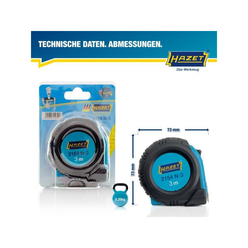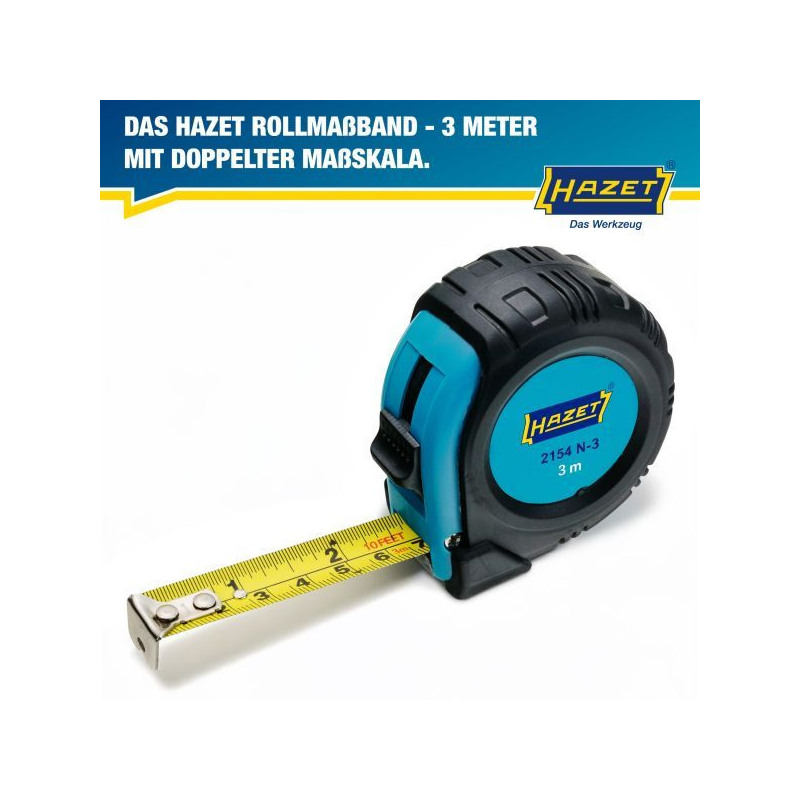 Tietoja lyhyesti: HAZET Tape measure 2154N-3 ∙ L x W: 3000 mm x 16 mmYleiset tiedot: •Euro-Standard II