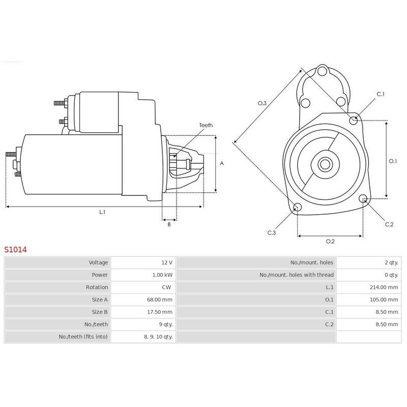 Käynnistinmoottori AS-PL S1014 - Ristmik autovaruosad