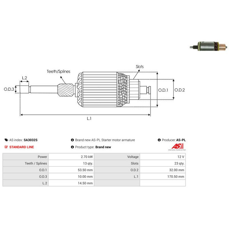 Ankkuri, käynnistinmoottori AS-PL SA3032S - Ristmik autovaruosad
