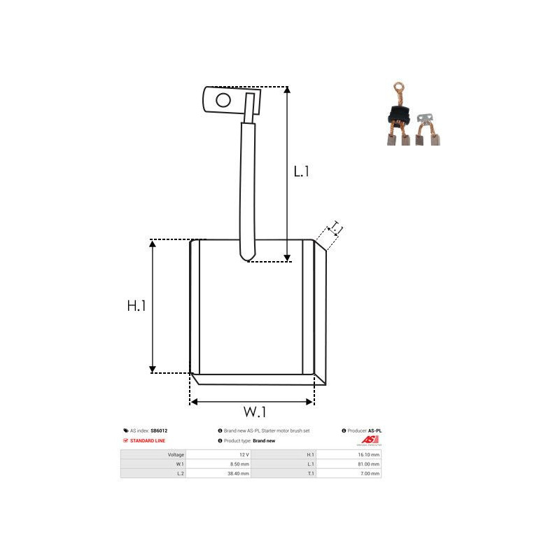 Käynnistinmoottorin hiilet AS-PL SB6012 - Ristmik autovaruosad