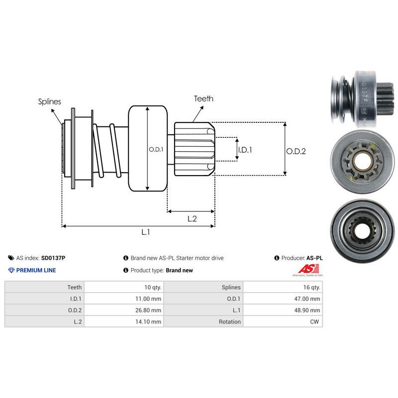 Vapaakytkin, käynnistinmoottori AS-PL SD0137P - Ristmik autovaruosad