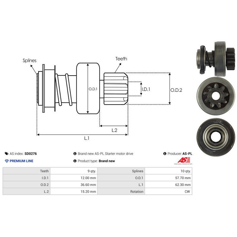 Vapaakytkin, käynnistinmoottori AS-PL SD0276 - Ristmik autovaruosad