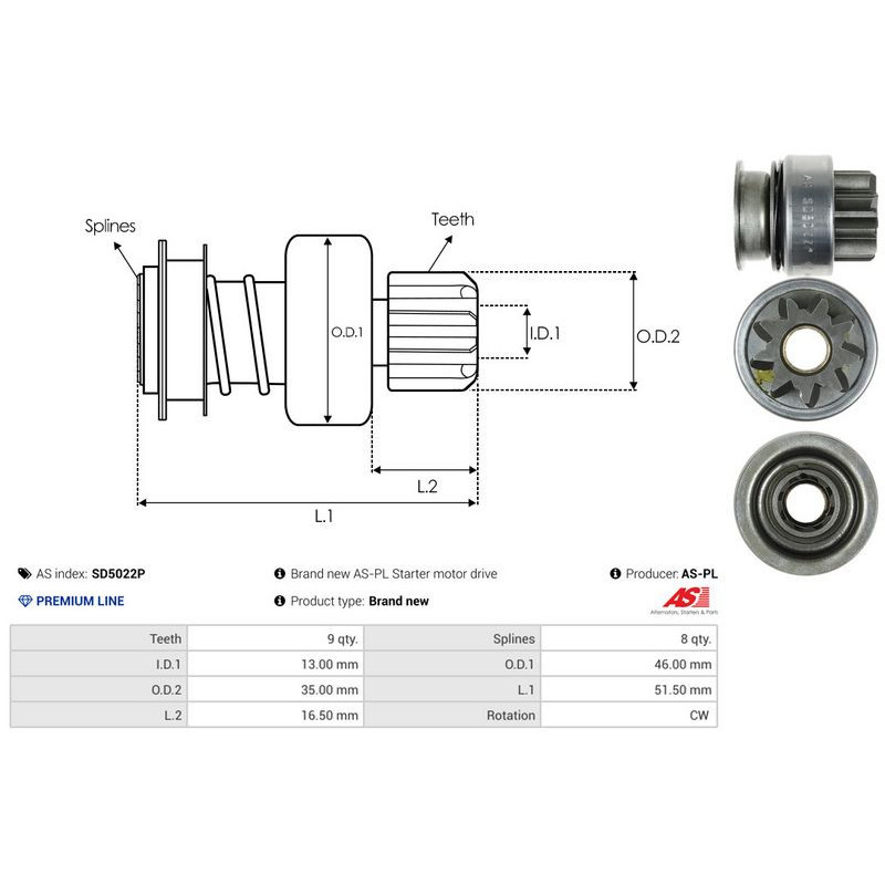Vapaakytkin, käynnistinmoottori AS-PL SD5022P - Ristmik autovaruosad